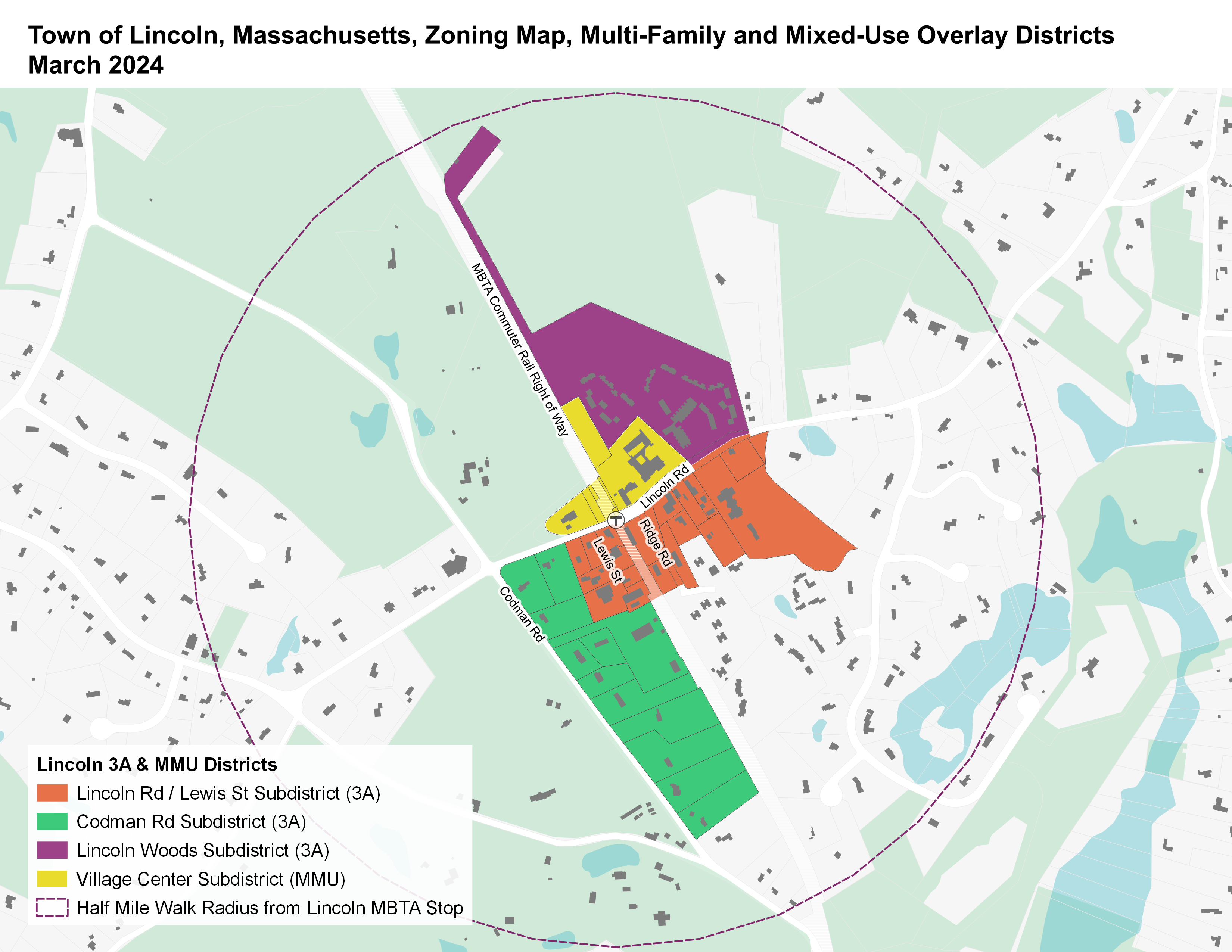 • The multifamily housing must have no age restrictions and must be suitable for families with children. In Lincoln, at least 20% of the 42 acres must be located within ½ mile of the commuter rail station.