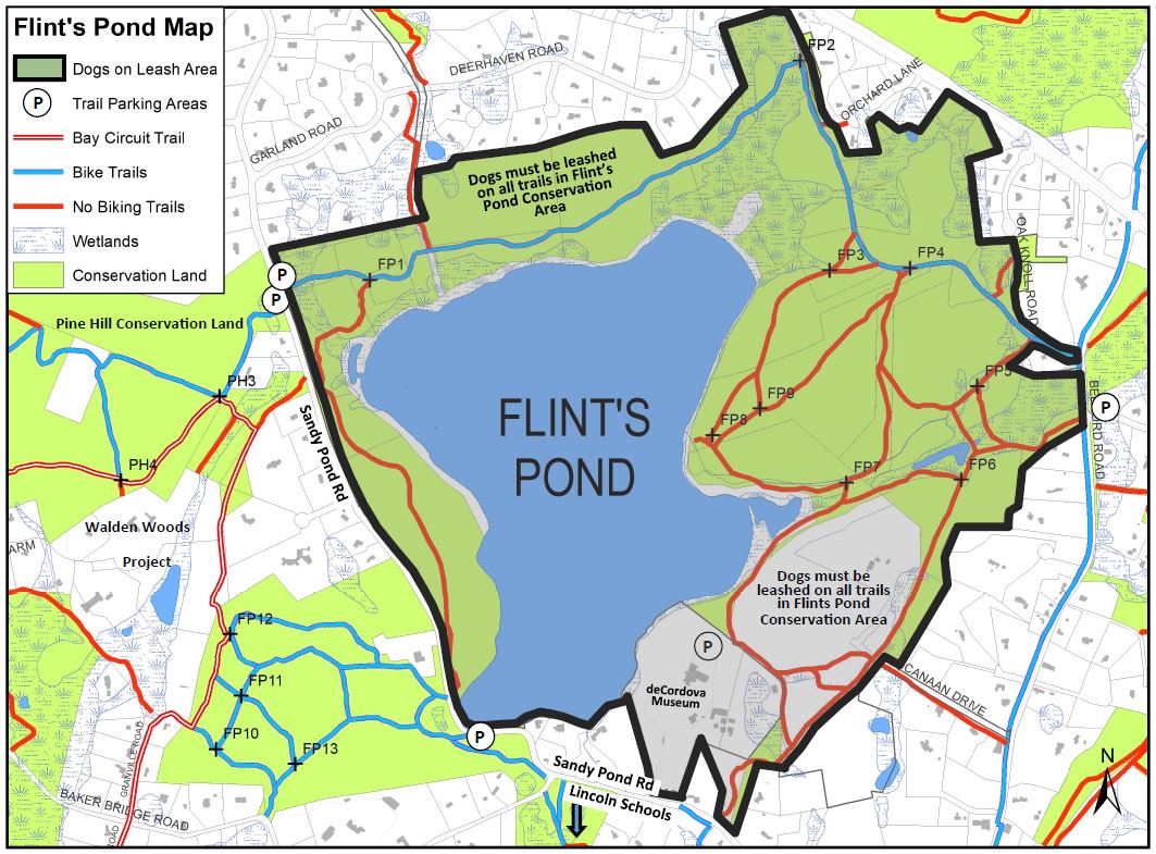 - Dog leashing area maps can be found here: Mt. Misery, Flint's Pond, Stony Brook/Harrington, Chapman Pasture.