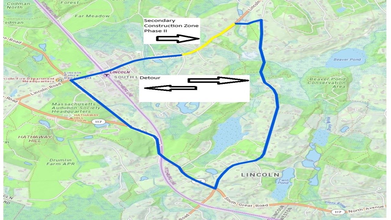 Yes. The drainage replacement work is planned for March–May 2026 and is expected to require a full roadway closure for the duration of that drainage project. Detours will be posted. Access west/north of Lincoln is expected via Sandy Pond Road and Baker Bridge Road to Route 126 and Route 2; access east of Lincoln is expected via Trapelo Road, Lexington Road, and Route 2.
